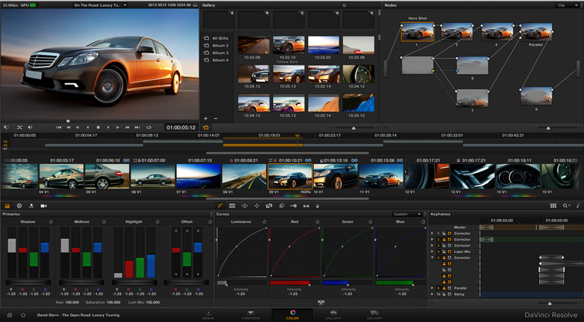 在调色方面,DaVinci Resolve 10支持行业标准OpenFX插件,且每个片段的插件数量没有限制;每个调色节点限制可支持无限数量的Power Windows;新加入的Gradient PowerWindow™使调色师能够迅速为图像添加渐变效果。其他调色功能包括复制和粘贴跟踪数据,以及动态特技,包括空间和时间、运动模糊特效。