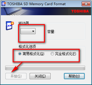 在启动TOSHIBA SD Memory Card Format之前,请关闭所有其他正在使用SD卡的应用程序。