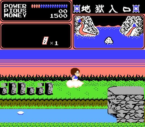 这款经典游戏诞生于1987年,难度适中。故事围绕一个天性顽皮的少年——太郎助,他整日嬉戏捣蛋。为了惩戒他,阎王将他在梦中带入地狱的世界。为了解脱自己的罪孽,太郎助踏上了轮回之旅!这是FC的移植版本,虽然因机能限制画面有所缩水,但却增添了许多新的剧情与设施,以此来弥补不足。