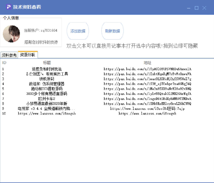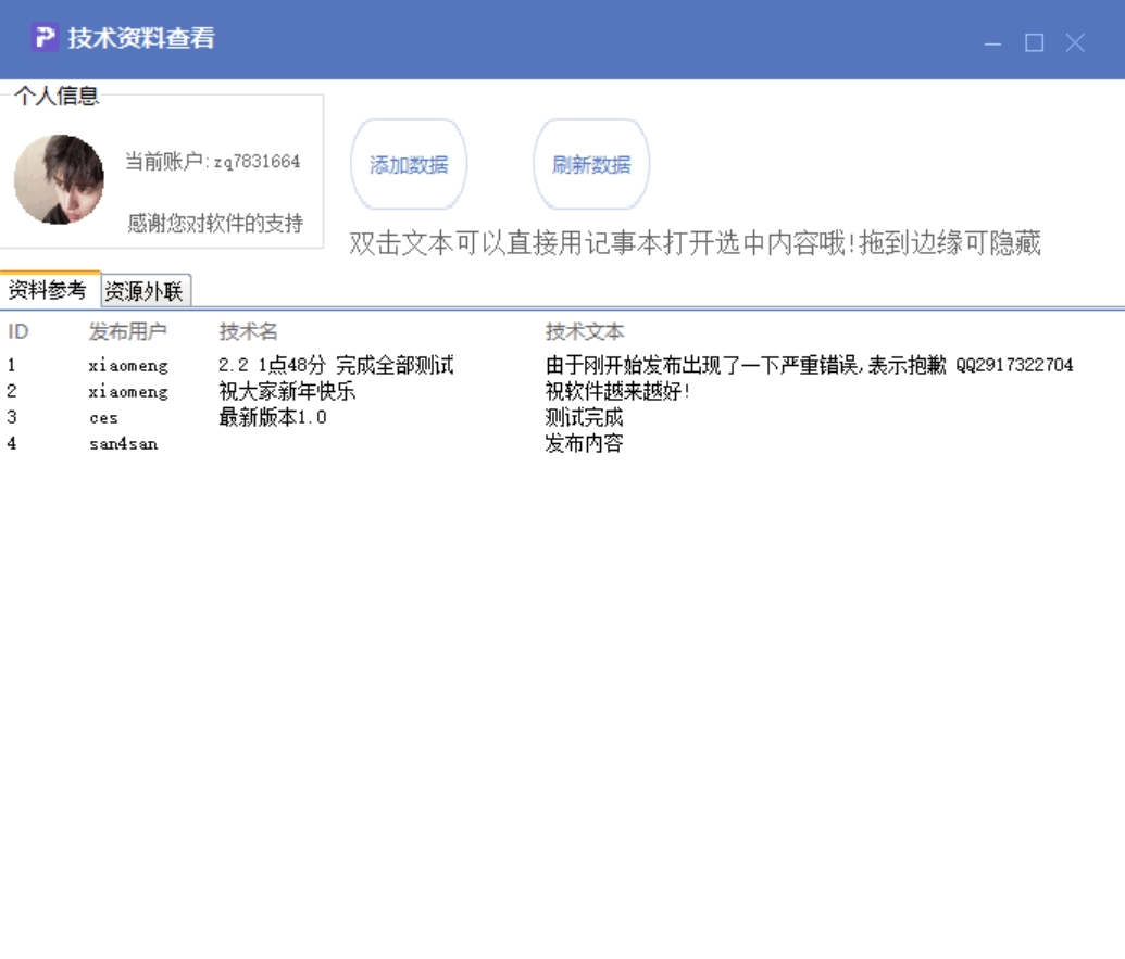 7: 目前软件内部尚无丰富数据,欢迎网友自行添加资料,明天将会增添一些优质文本。