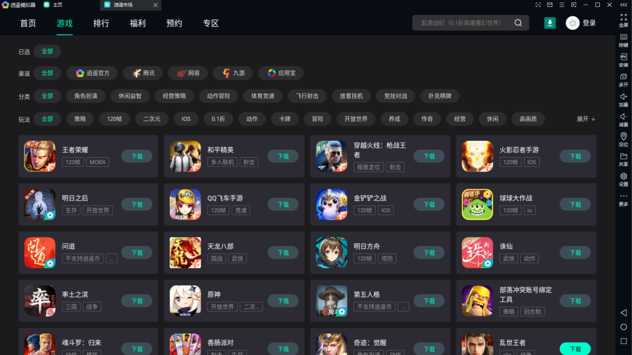电脑玩手游、用安卓应用就是逍遥安卓!性能测试最强,一键无限多开(一次安装、无需、无需多个内核),兼容所有主流安卓应用,流畅不卡顿,支持1080P高清大屏。支持无线手柄和最齐全的键盘映射功能(W八方位操控、重力感应、多点触控等),还有ROOT、IMEI、模拟各种手机型号等强大功能请下载之后体验!
