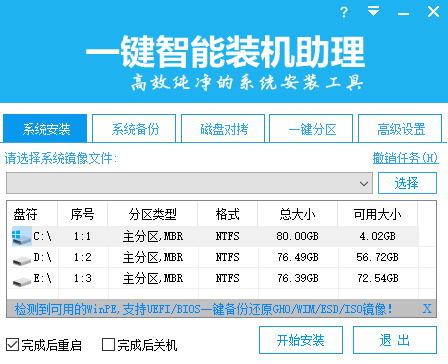 一键智能装机助手是一款极为出色的系统安装工具,旨在为用户提供一键重装系统、磁盘分区、文件备份等便捷功能。其操作界面简洁明了,使用起来相当便利,若您需要这样的工具,切勿错过,快来下载体验吧!