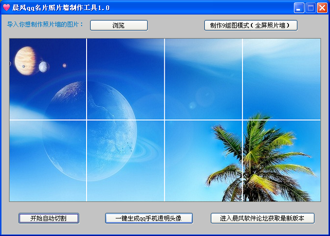 第三步:点击“开始自动切割”按钮,软件将自动将8个图片分割完成,随后打开您的手机QQ,将这些图片上传至手机相册即可。