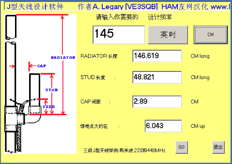 本软件旨在为设计J型天线提供便利,特意将其汉化,以便国内的HAM友们更为轻松地使用。
