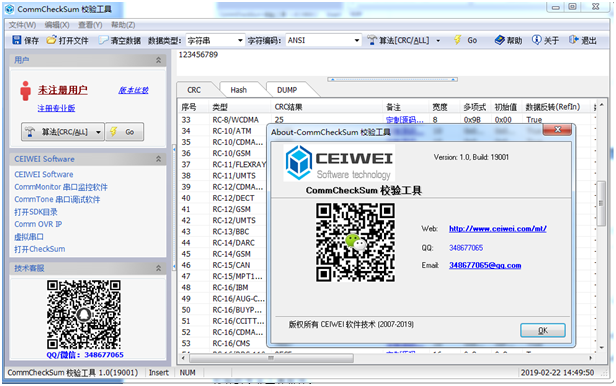 CRC校验支持:CRC3、CRC4、CRC5、CRC6、CRC7、CRC8、CRC11、CRC12、CRC13、CRC14、CRC15、CRC16、CRC17、CRC21、CRC24、CRC30、CRC31、CRC32、CRC40、CRC64、CRC82、Adler32等共计105种CRC算法,支持显示标准的多项式、初始值、数据反转及结果异或值。该软件支持Windows外壳扩展,方便快捷地调用并显示文件的CRC/Hash信息。