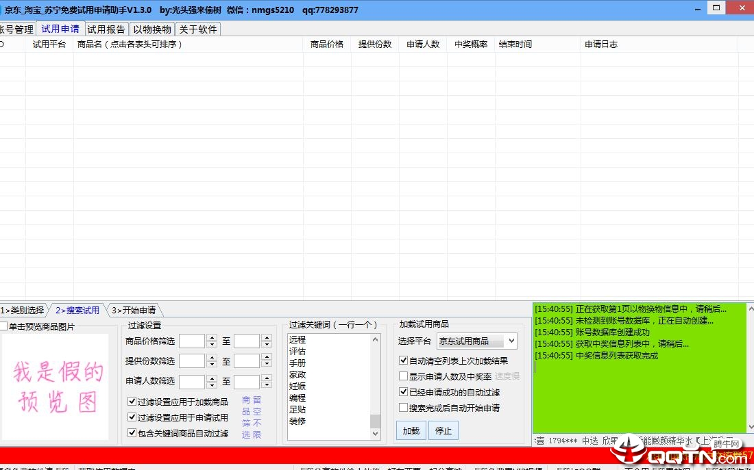 免费试用申请助手是一款支持京东、淘宝与苏宁的免费试用申请工具。目前已全面支持这三大平台。