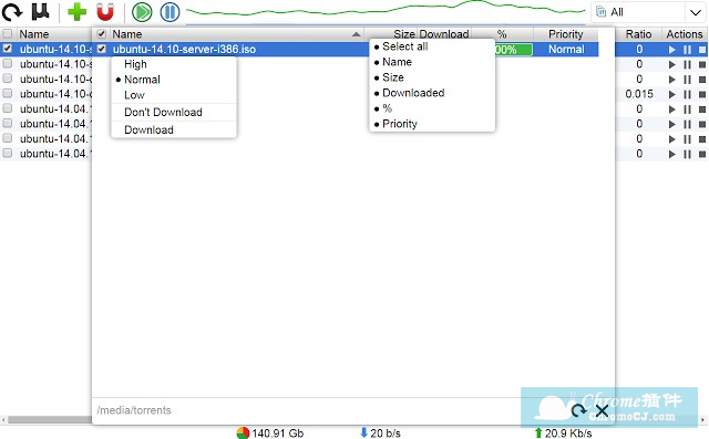 1.在谷歌中安装uTorrent easy client插件,并在Chrome的扩展器中启动BT种子下载的功能,uTorrent easy client插件的下载地址可以在本文的下方找到,离线uTorrent easy client插件的安装方法可参考:怎么在谷歌浏览器中安装.crx扩展名的离线Chrome插件? 最新谷歌浏览器离线安装版可以从这里下载:http://chromecj.com/chrome/2014-09/177.html。