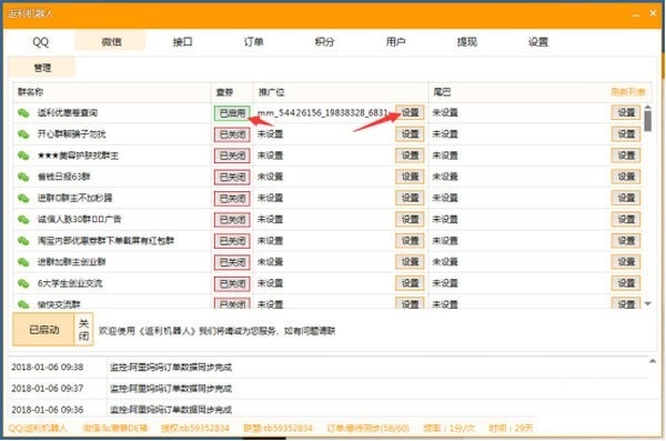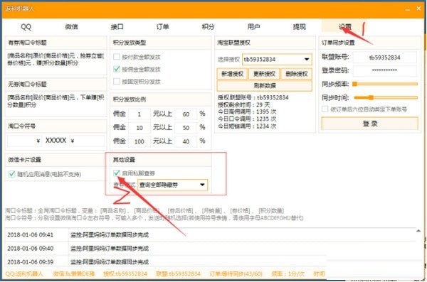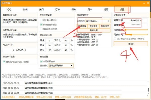 2.登入淘宝联盟的账号,授权和订单同步功能,登入一次就可以了。30天到期在登入一次即可,如图: