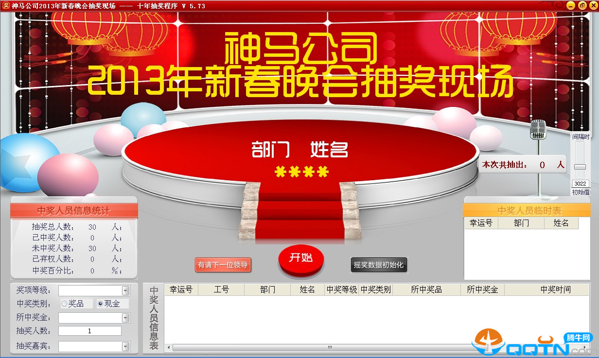 十年抽奖系统是一款专为企业年终抽奖制作的一款专业的随机,这款软件的界面美观,使用起来非常简单方便,同时抽奖的随机性保证了公平公正,软件界面包含标题、部门姓名、跑马标签等字体、颜色及字号大小自定义功能,简洁明了,帮助用户进行更高效公平的抽奖活动。