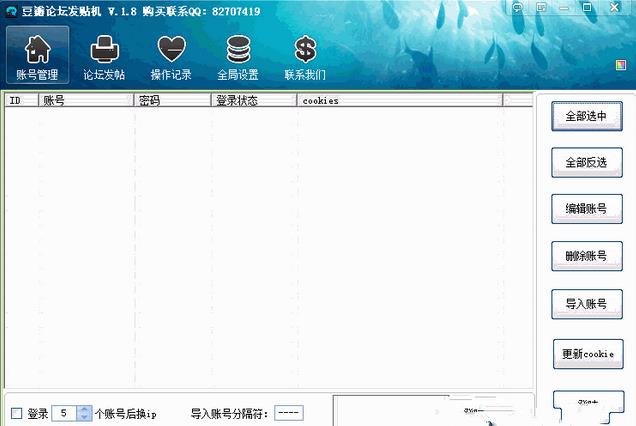 1、本软件支持多帐号循环发帖,账号自动保存cookie,自动检查失效账号!