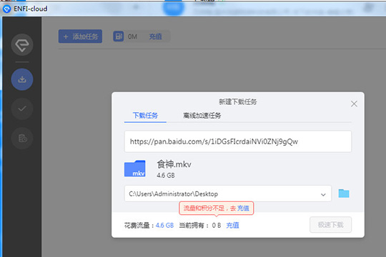 ENFI 发起离线下载加速任务,预加速互联网内容,ENFI CLOUD将即刻为你提供高速体验。