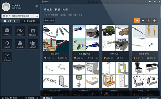 它涵盖了室内、建筑、景观、城规、工业等设计领域的海量设计素材,旨在帮助设计师快速精准地找到自己想要的设计素材、更好地管理自己收藏的设计素材。数联云设计客户端将成为每位SketchUp设计师的得力助手。