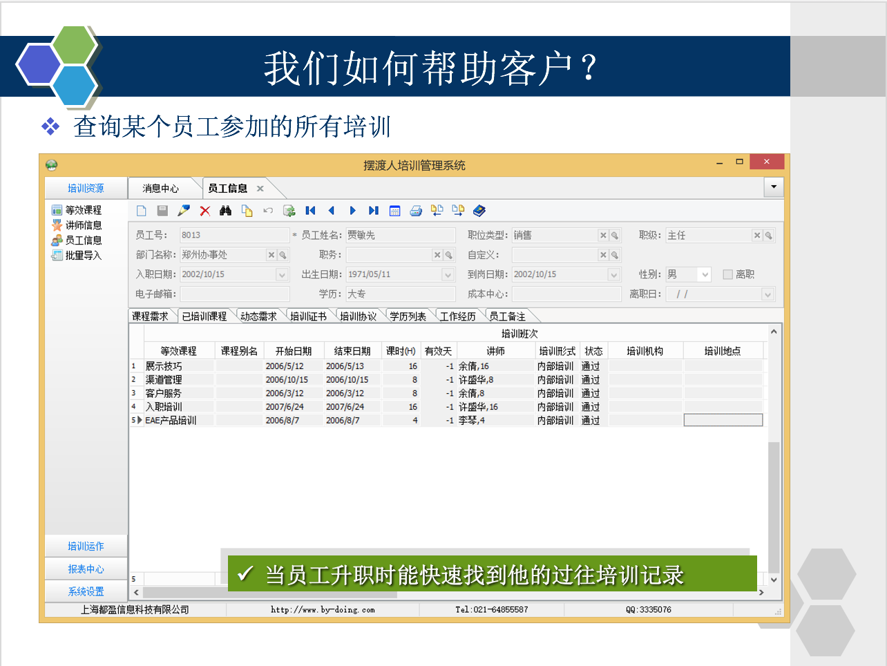 摆渡人培训管理软件不仅仅记录培训档案,还能分析各种报告,提供决策支持。