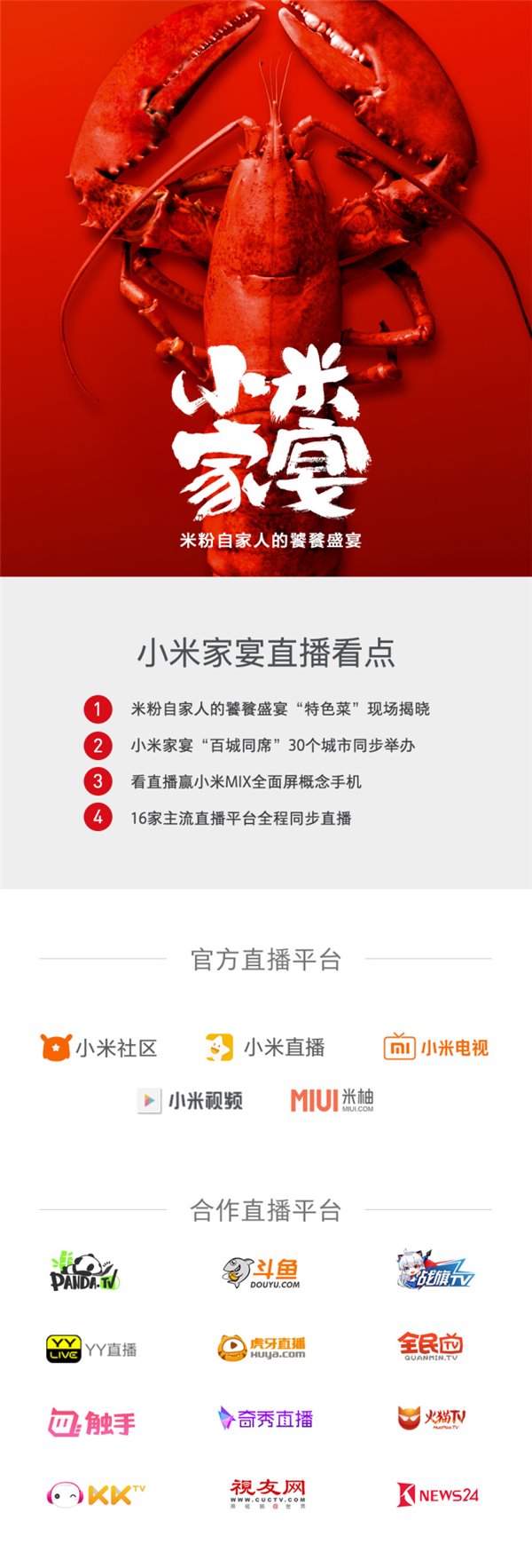 不过小米也提供了多达13家进行同步直播,感兴趣的米粉记得提前锁定关注。