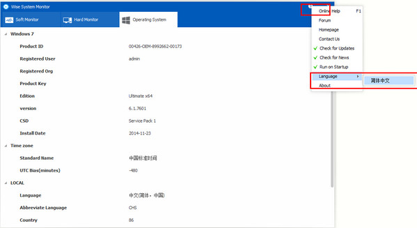 软件安装后默认为英文诉话可以点击右上角“问号"点击language==简体中文来设置软件主界面语言。