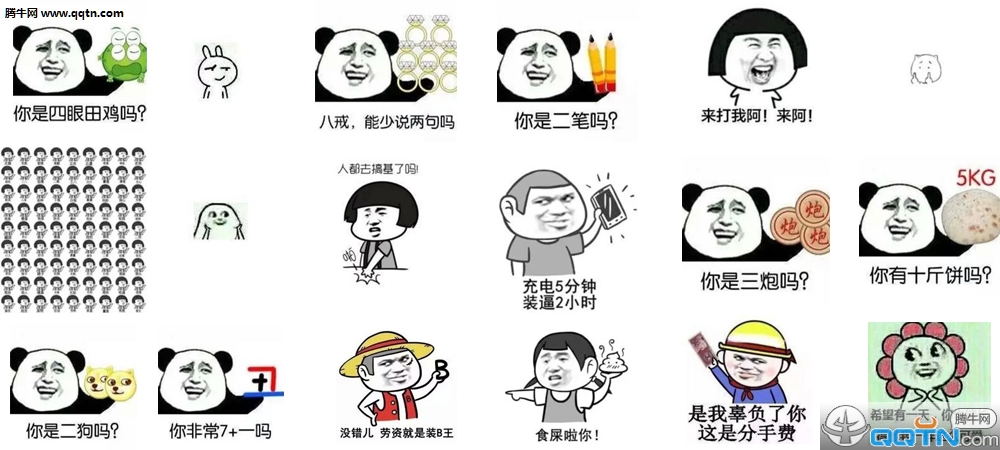 暴走装逼表情包内含:吃了一鲸 八戒 食屎啦你 搞基 二笔 丑 装逼 打我 偷笑等30P表情。这是一款装逼专用表情包,依然是暴漫的恶搞风格,用谐音等方式给你带来欢乐,快来下载表情包,教你花式装逼。