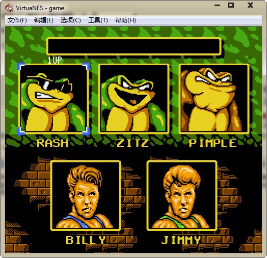 游戏玩家共有5个主角可选择,分别为三只青蛙和两名双截龙兄弟.三只青蛙除了长相外全部能力都一样,双截龙兄弟也如此.