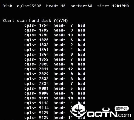 3、运行本程序,会先显示硬盘的参数,并问你是否扫描硬盘Start scan hard disk ?(Y/N)。