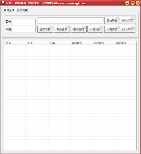 殇龙百度云转存工具是一款可以帮助你一键批量转存百度资源的软件,这款软件非常实用,它专为百度云网盘用户打造,帮助一键批量转存网盘上的资源,让你免除手动操作的烦恼,不需要一个一个去转存了,非常方便好用!同时软件操作简单,欢迎有需要的朋友免费下载使用!