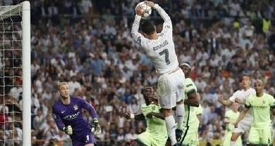 今天凌晨,C罗在比赛中上演了一出空中接力暴扣得分的精彩演出,不过这么漂亮的却不是出现在篮球场上,而是出现在皇马同曼城的足球比赛当中。