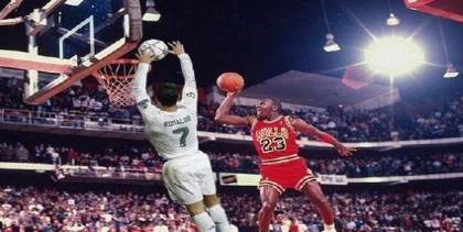 这一幕出现在比赛第64分钟,贝尔在小禁区前的头球攻门打在了横梁上弹出,佩佩禁区右侧传中,只见处在远门柱的C罗高高跃起,用双手接住佩佩的传球,然后用一个标准的扣篮动作将球送进曼城队的大门。这球虽然进的很漂亮,但是可惜这是在足球场上。