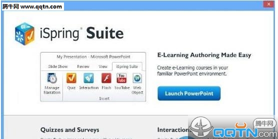 iSpring Suite 8是一款实用的办公工具,主要方便用户将ppt为flash格式,软件提供了友好的操作界面,转换后的布局和动画均不会改变,同时兼容所有的浏览器和操作系统,iSpring Suite包含了Spring Pro 专业版、iSpring Kinetics、iSpring Quiz等内容,可以大大地提高办公效率。