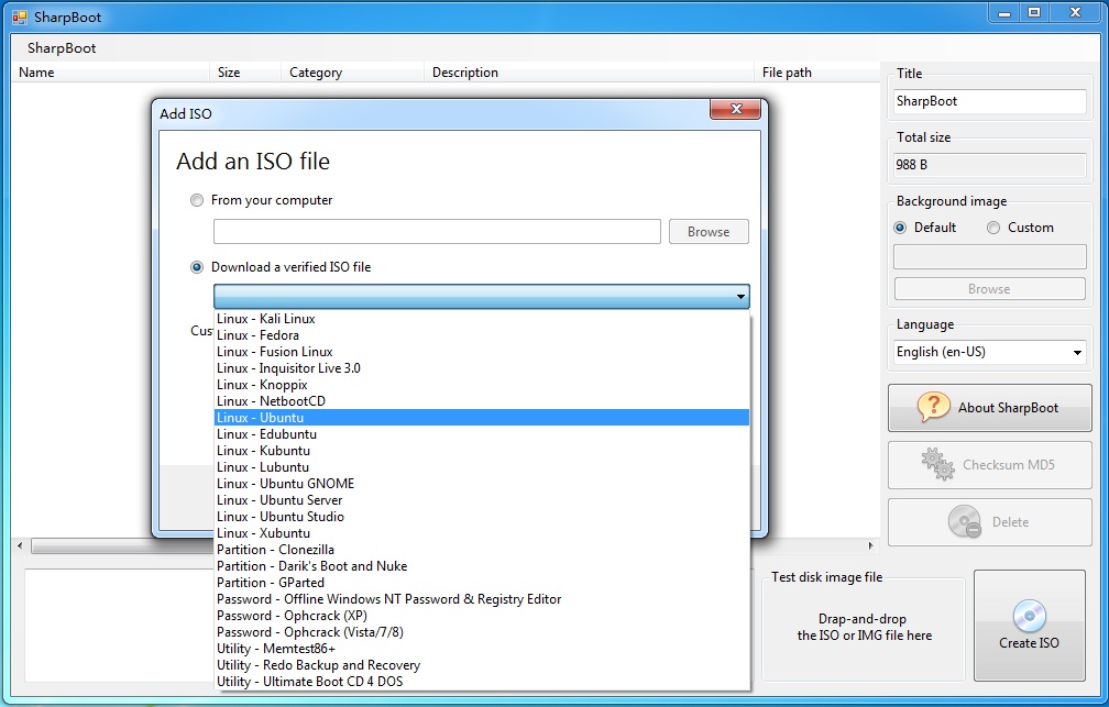ShpBoot启动盘制作工具支持同时添加多个ISO镜像文件到一个ISO里边。以往我们有多个系统镜像文件想要刻录到 U 盘时,通常的方法是先将一个镜像文件刻录到 U 盘里,然后用完了再刻录另外一个。这样不仅费时,还十分费力,有了SharpBoot启动盘制作工具可以很方便的完成。