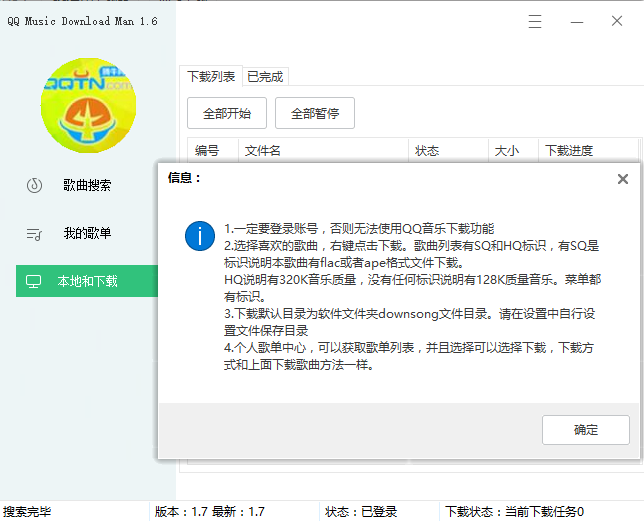 如果前面没有任何标识,表示该曲目仅具最低品质,您可直接通过QQ音乐进行下载,无需本软件下载。