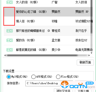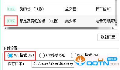 若歌曲前显示HQ字样,则说明其最高质量仅为320K,您只能选择Mp3格式进行下载。