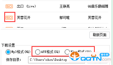 若歌曲名称前标有SQ标志,则表示该曲目可供下载无损格式,您可选择ape或flac选项。