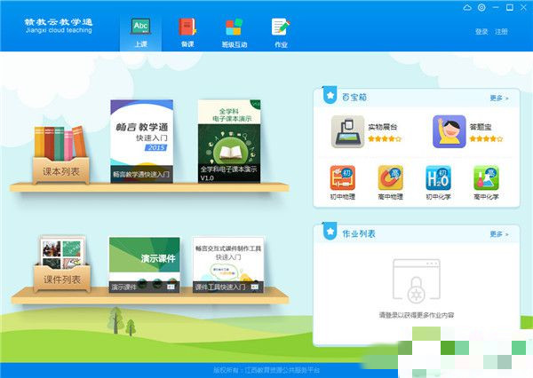 江西省赣教云平台登录入口客户端是专为教师量身打造的备授课一体化教学工具集,其内容核心为全学科成体系的正版电子教材,并同步提供优质的到书到课资源及多种强大的信息化教学研究工具,统筹资源备课、互动授课、习题讲解等多样教学场景,常态化辅助教师达成教学和教研目标。江西省赣教云平台登录入口深受各学科教师的喜爱,教师根据教学需求,合理运用该平台,不仅提升了学生的学习兴趣,也显著提高了课堂教学的效率。如今,“赣教通”在鄱阳县的各中小学得到了全面推广与广泛应用,对教育的均衡发展起到了积极的推动作用。