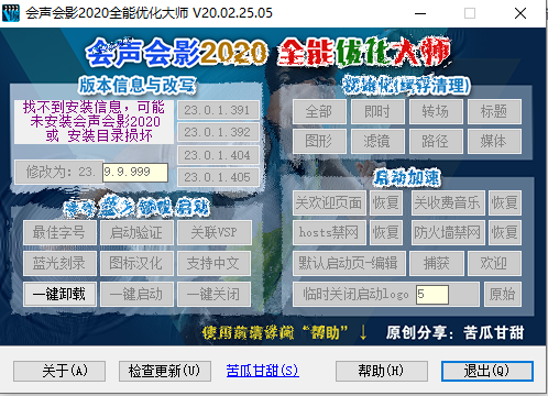 3、本工具智能查找会声会影的安装路径,自动区分程序版本,适用于会声会影2020的所有版本。