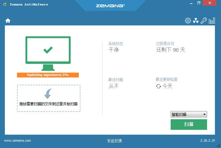 下载Zemana反恶意软件后,您便可以开始扫描。Zemana反恶意软件不会在计算机上保存病毒定义。相反,当软件识别到可疑文件时,它会将其指纹发送至云端,经过十种不同的反病毒引擎进行验证。毫秒之内,扫描云将文件标记为安全或恶意,若有必要,反恶意软件将其上传以进行进一步检查。一旦确认恶意软件,它将迅速展开清除。