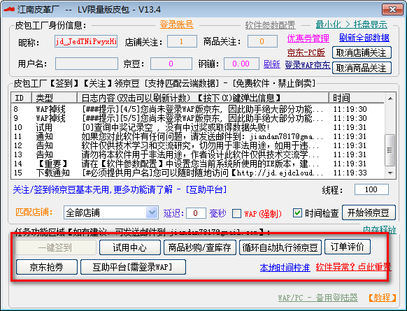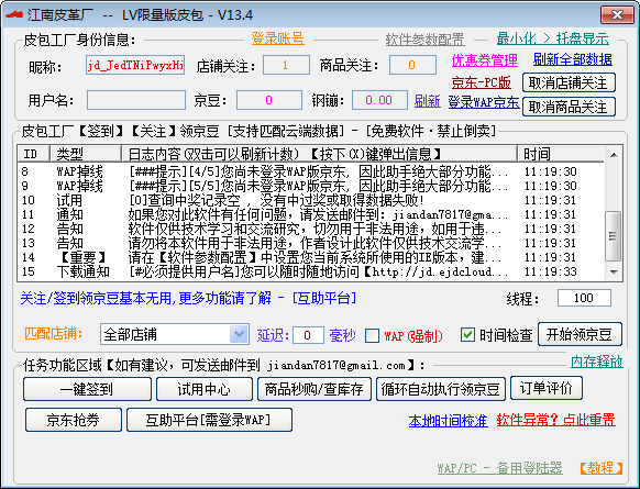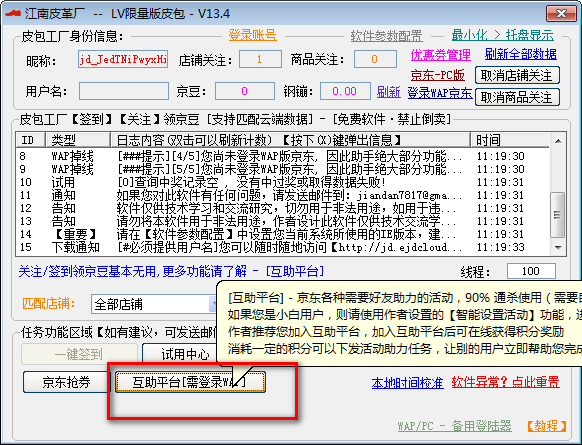 二、选择后,软件将自动切换至相应模式的京东活动助手工具。