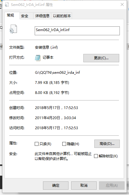 一、若您的系统出现“未找到Sem062_IrDA_inf.inf”或“缺少Sem062_IrDA_inf.inf”等类似的错误提示,请将Sem062_IrDA_inf.inf下载至本地。