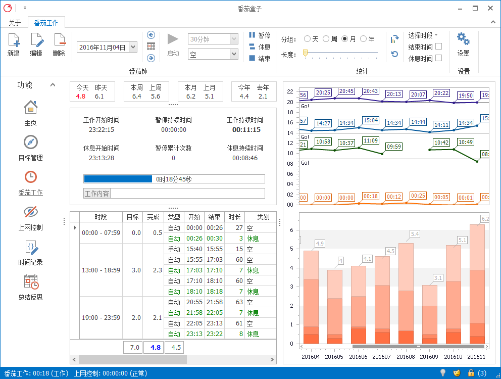 番茄盒子是一款免费的桌面应用软件,涵盖目标管理、番茄钟、上网控制、时间管理以及总结反思等多种功能。