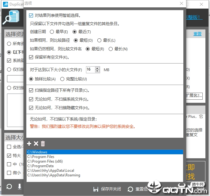 当然,您可利用一些实用的选项(如智能选择、比较大文件的算法、是否扫描系统/隐藏文件,以及排除文件夹等)来影响最终结果。