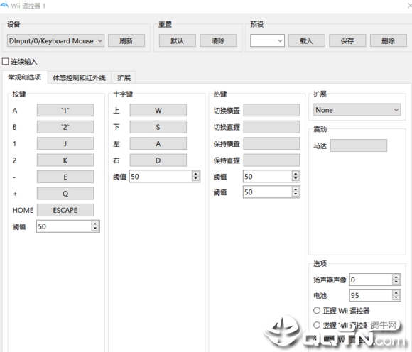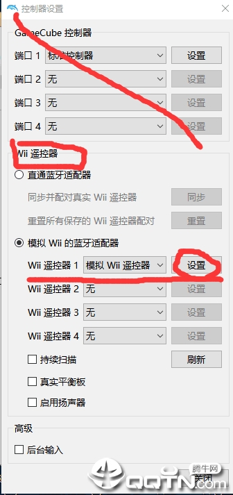 1.若拥有Wii手柄,请设置为真实Wii控制器,并勾选持续扫描,然后通过蓝牙连接。