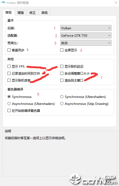 4.垂直同步设置为与显示器刷新率一致,如不明白则可保持默认关闭;