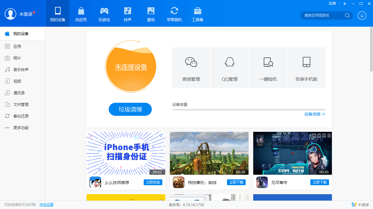 91助手PC版是一款支持iPhone、iPad、Android等智能手机系统的PC端管理软件,提供应用、游戏、主题、壁纸、铃声等丰富资源的下载,并实现文件、短信、联系人、照片与视频的全面管理。此外,它还提供备份还原、闪退修复、一键清理、一键加速等实用工具。91助手作为国内首屈一指的手机助手品牌,自2007年问世以来,历经十年发展,于2013年以19亿美元被收购。
