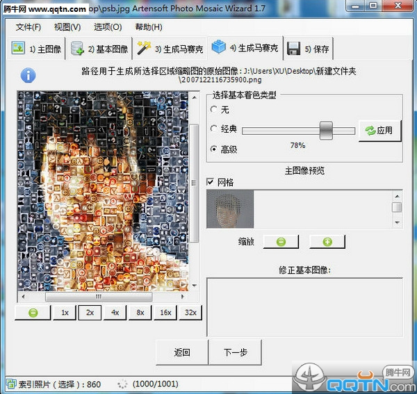 您可以在保存前预览,并在程序中进行放大或缩小,细致查看镶嵌效果;