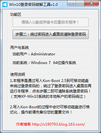 此工具融合了kon-boot 2.5,致力于清除电脑开机密码。kon-boot本身只能绕过登录密码,而无法直接清除密码。本软件巧妙地将绕过密码的功能与清除密码的工具相结合,实现破解Windows系统登录密码的目标!