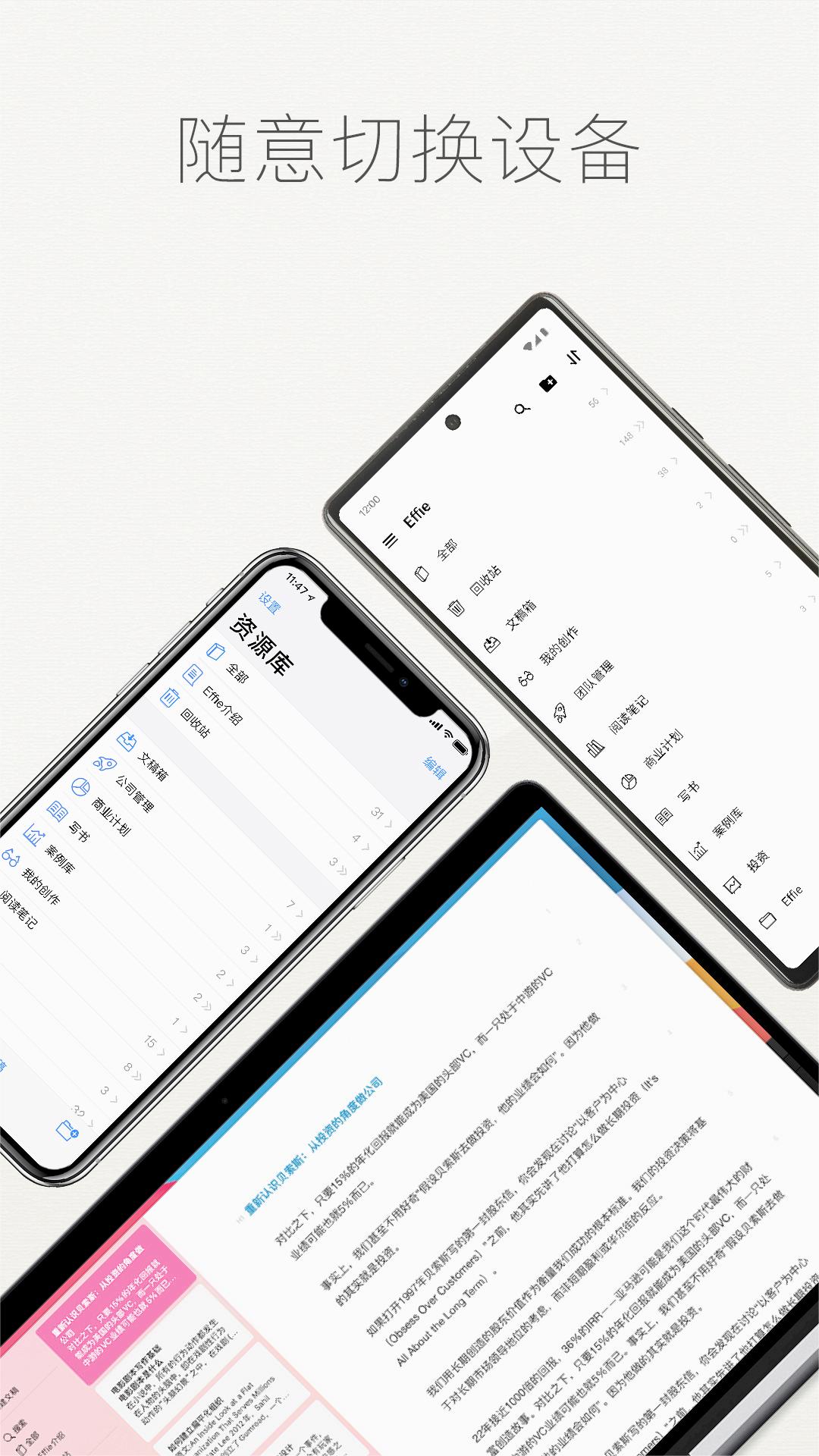 Effie软件安卓版应用,功能齐全的手机利器,支持、笔记大纲等多种功能,在线创作,轻松写作,随时记录灵感,让手机写作与创作变得更加轻松,众多功能与工具随时为您服务。