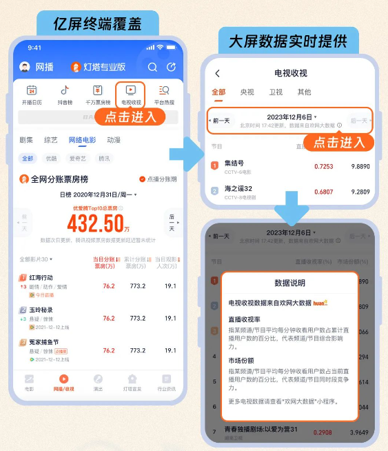 灯塔专业版App是一款功能齐全的宣发服务平台,汇聚了大量专业数据,涵盖实时票房、网络播放收视、数据分析等多种服务,致力于提升行业数据的透明度与全面性,帮助行业有效解决痛点问题。