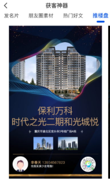 1、随时维护客户关系,增加获客机会 通过分享悦家楼盘小程序、楼盘海报、,让您轻松获取客户,不错失任何一个获客良机