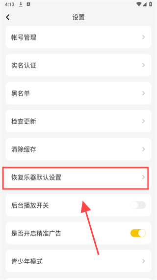 3、在设置界面,点击【恢复乐器默认设置】按钮即可。