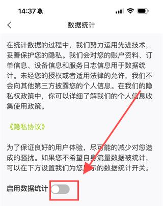 3、进入数据统计界面,点击开关按钮即可开启数据统计功能