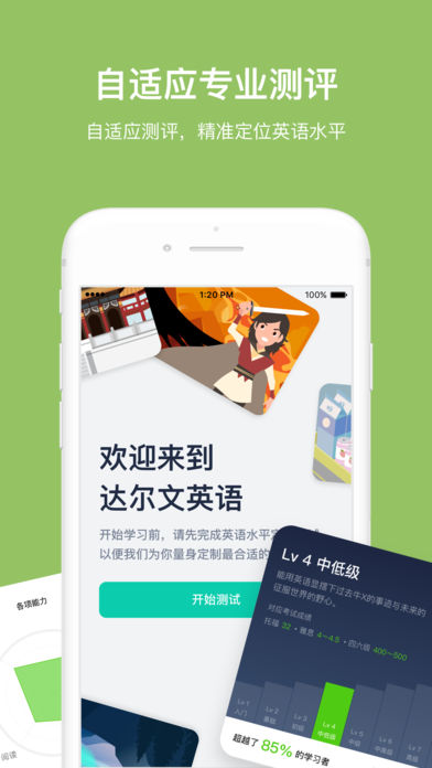 * 自适应诊断测试,精准评估英语水平,准确,让学习者立于优势;