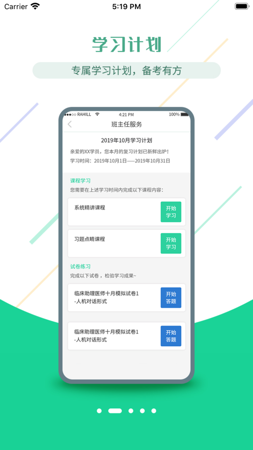 此应用主要为医学考试提供在线辅导,包括观看课件、在线练习和模拟真实考试等功能。