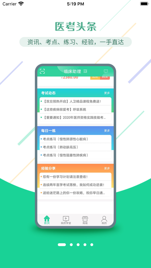 医考学堂是人卫医学的移动客户端。该应用主要为广大医学考生提供在线考试辅导,包括课程、习题、精编考点、模拟试卷等。已经帮助数百万考生成功通过医学考试。